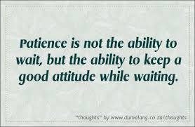 During these trials of me wanting it NOW I need to learn to keep a better attitude in the waiting. Remember as I said earlier, patience is not the ability to wait, it's the ability to keep a good attitude while waiting. Patience is a fruit of the spirit that manifests itself in a calm, positive attitude despite the circumstances. I definitely didn't demonstrate good patience this afternoon. I need to remain joyful and patient in all trials of my life.